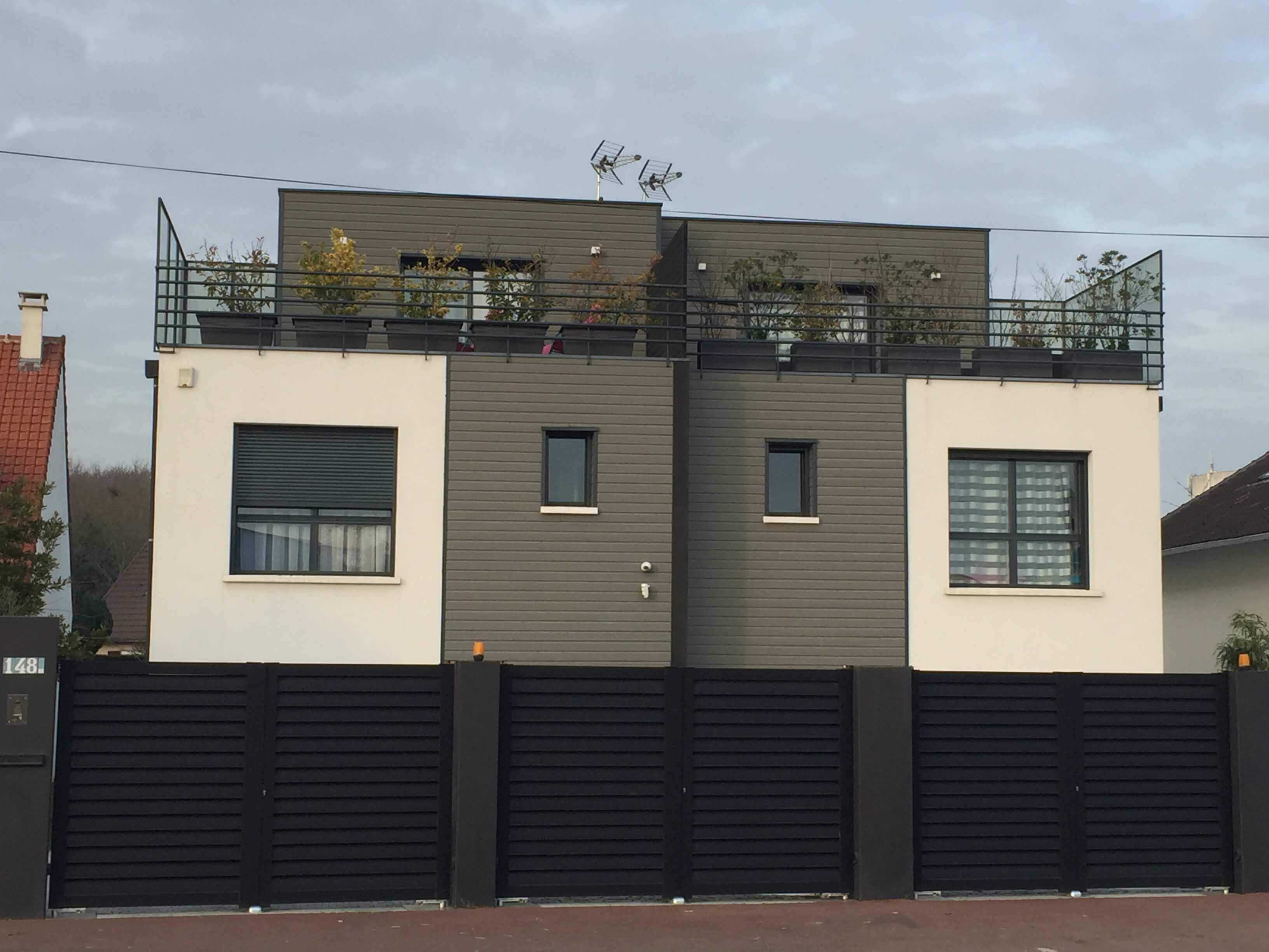 Construction de 2 maisons modernes mitoyennes à Maisons-Laffitte, Yvelines (78)