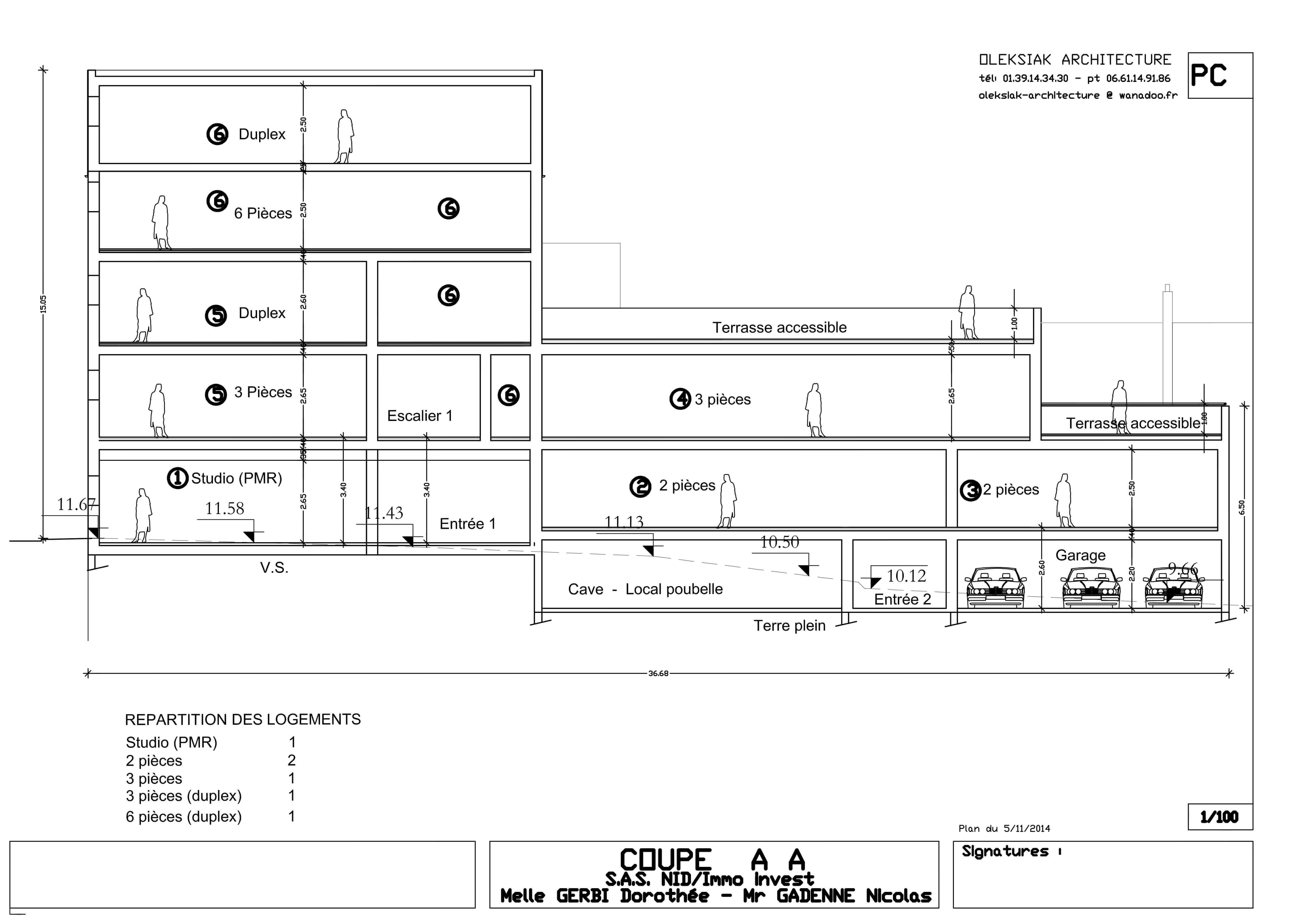 Immeuble de 6 logements constitué de 1 studio , 2 deux pièces , 2 trois pièces , 1 six pièces en triplex avec terrasse type Roof top de 73m2 ainsi que trois garages + caves.