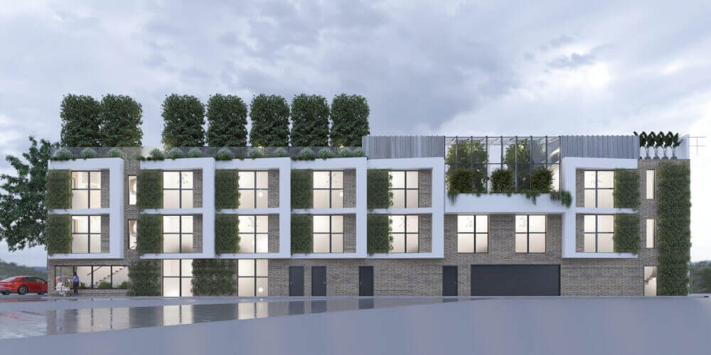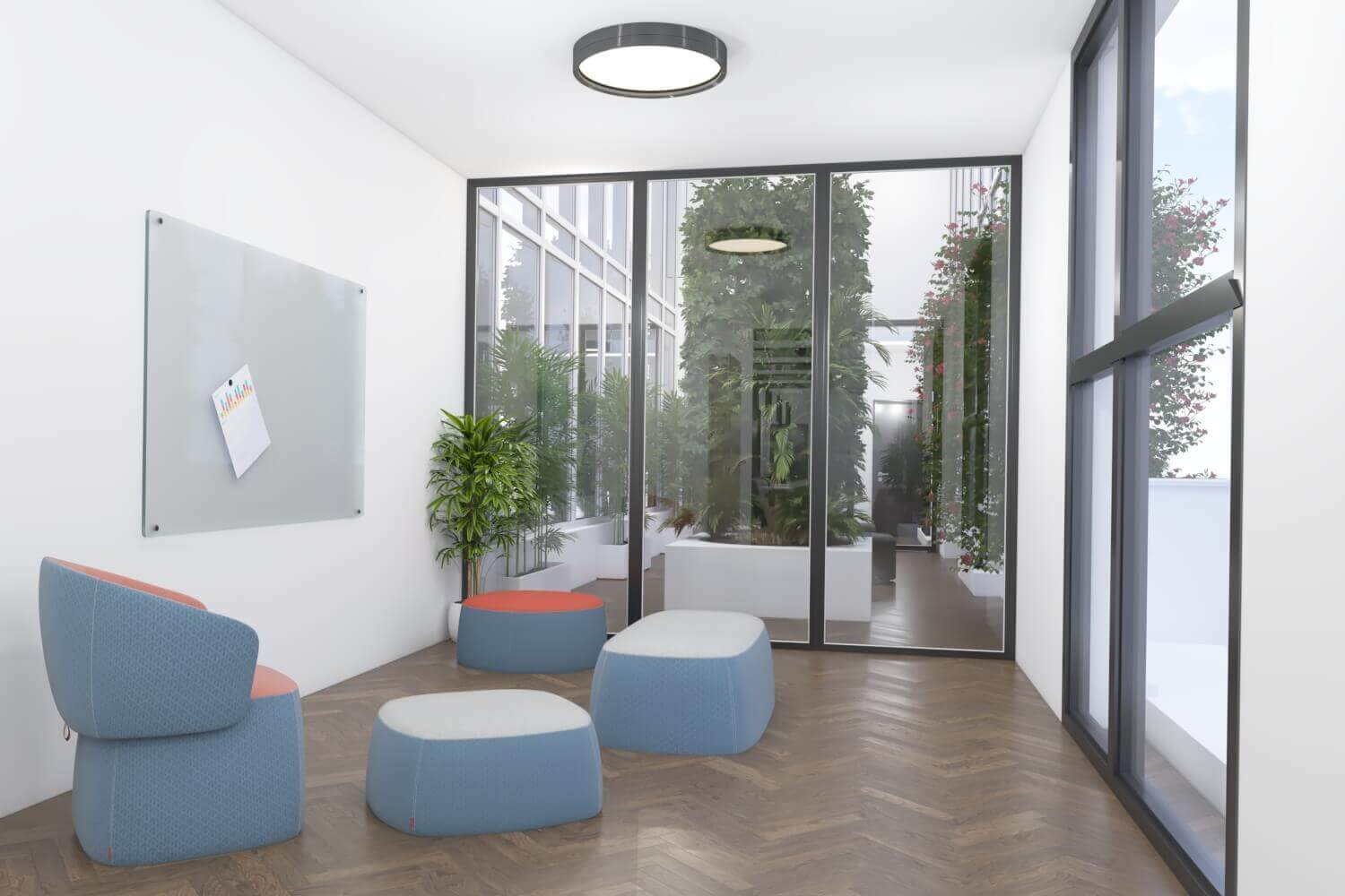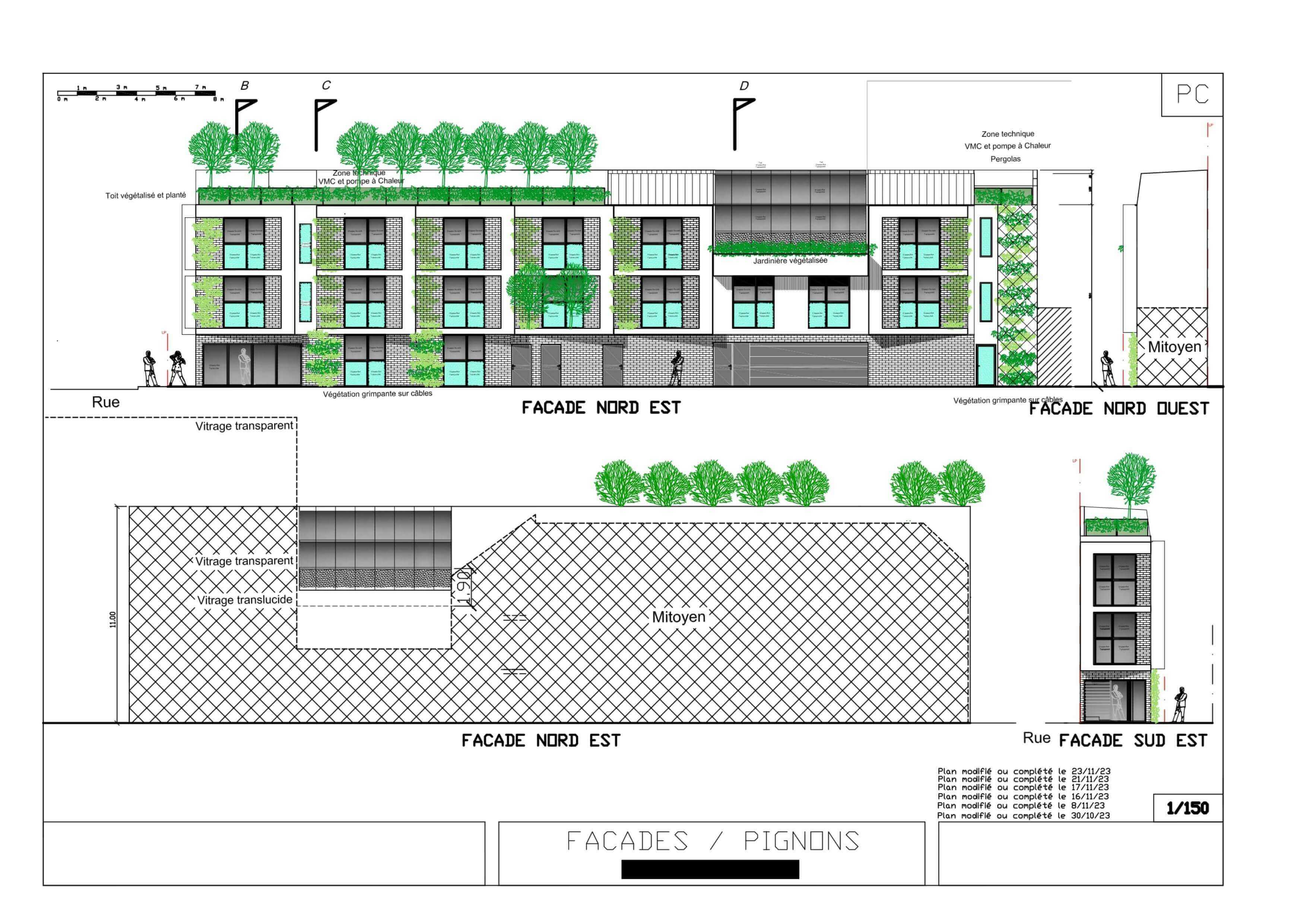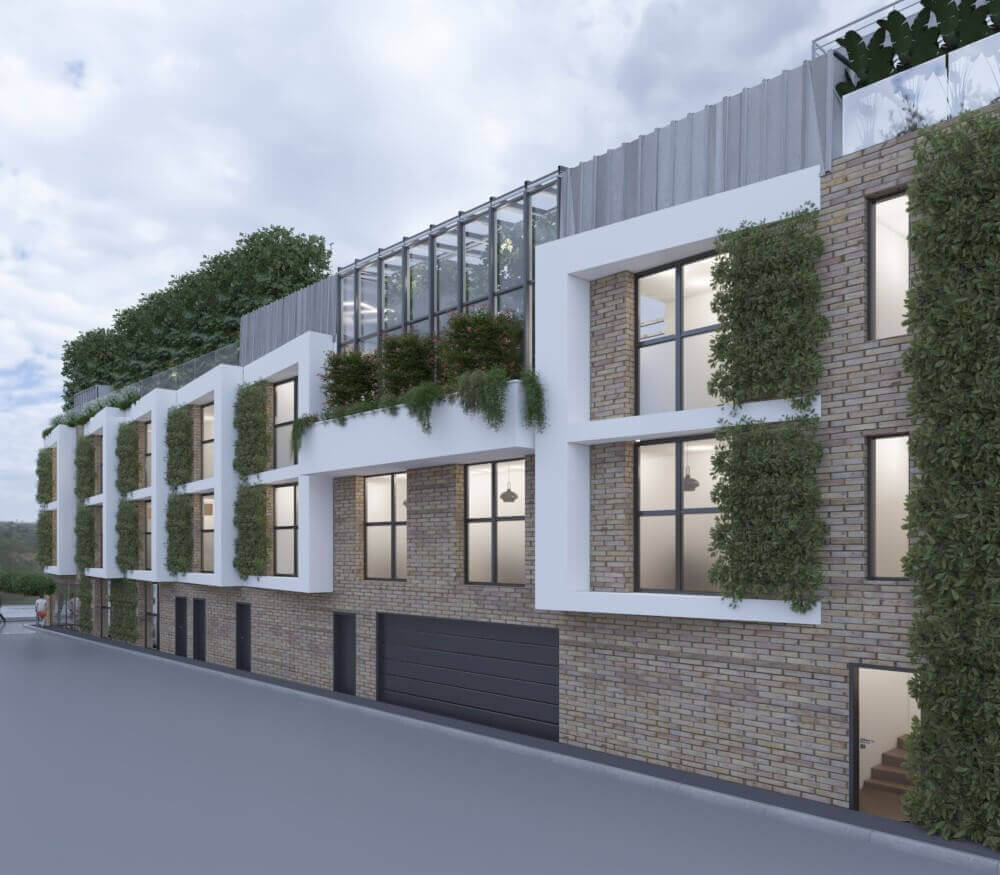 Le projet consiste à créer une surélévation sur un existant hyper étroit constitué de 5 bureaux, d’un espace de détente sous une verrière, un toit végétalisé avec des arbres.