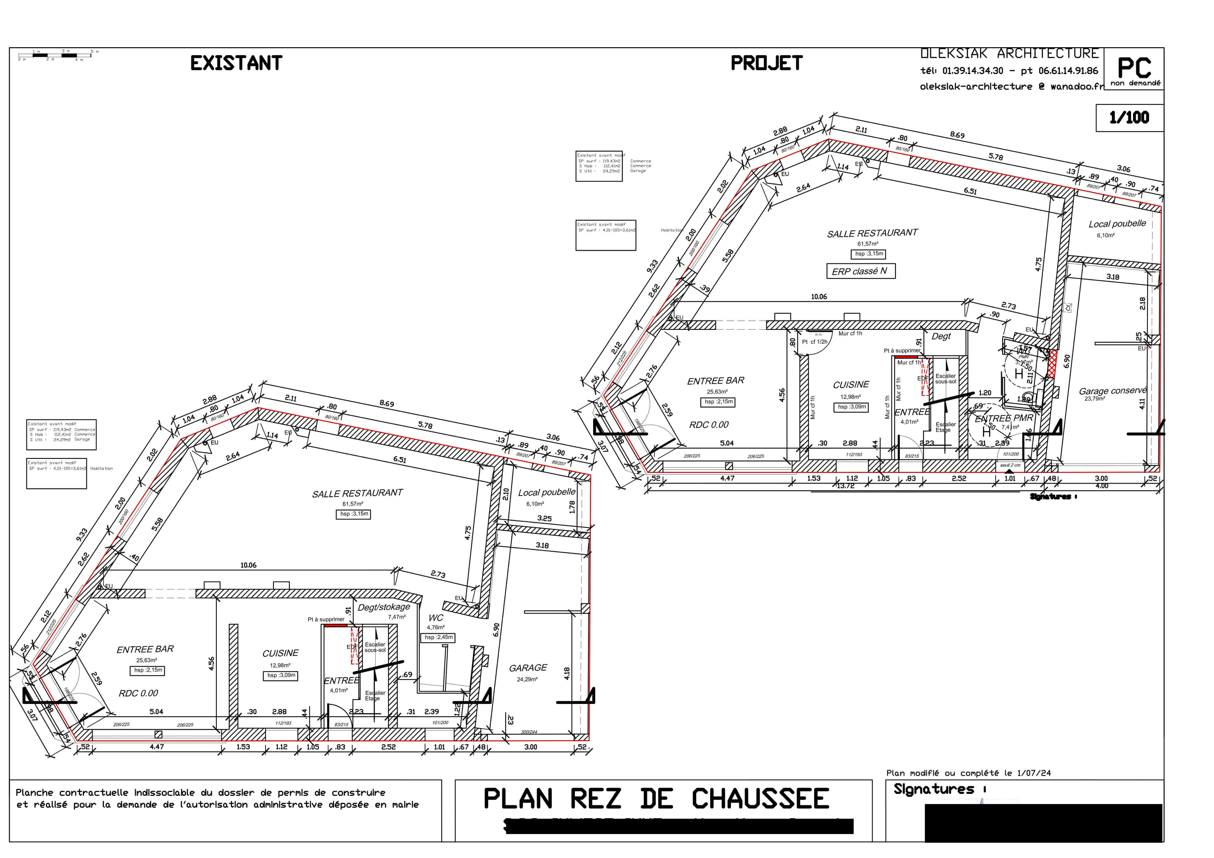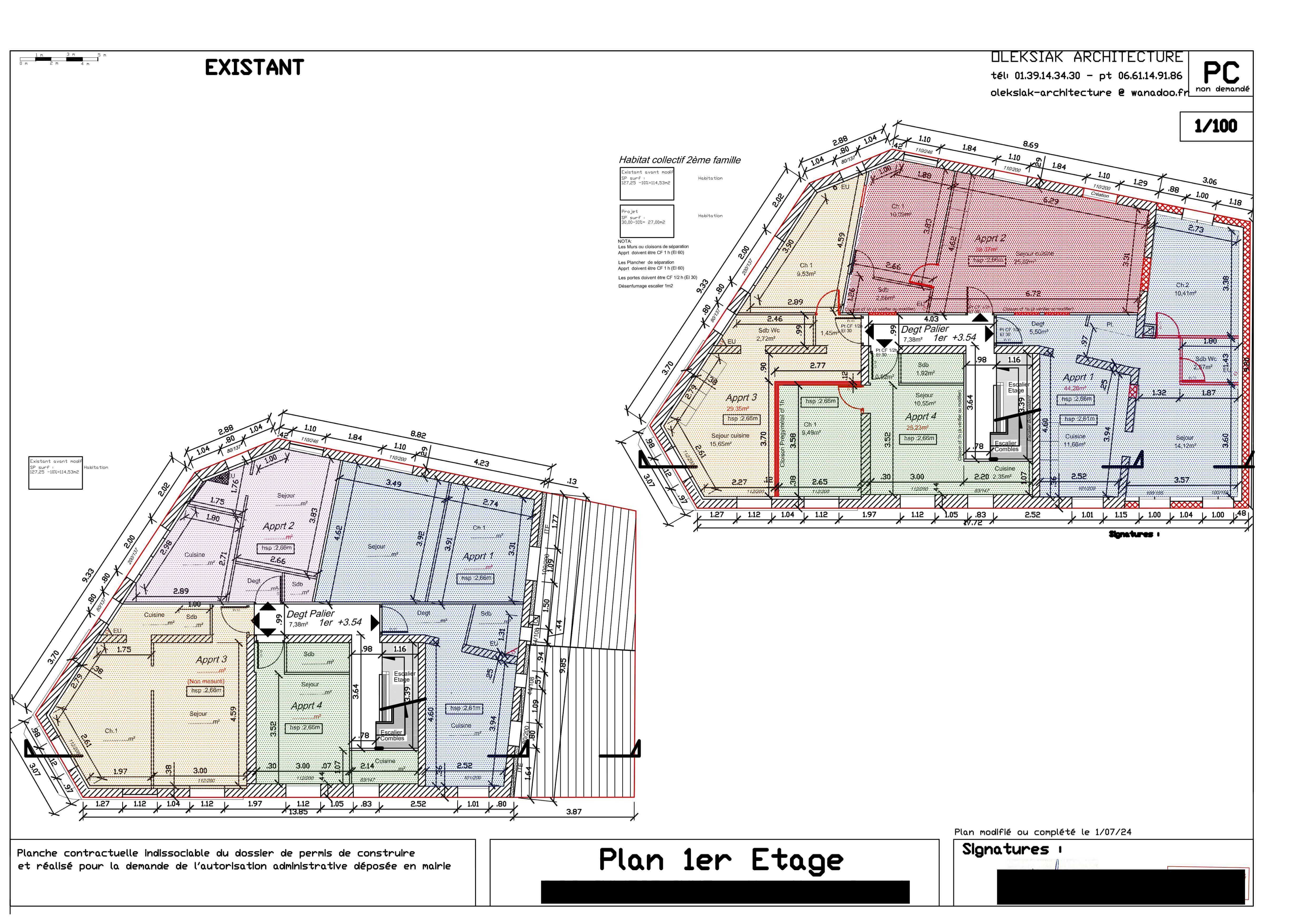 Surélévation et restructuration d'un Immeuble existant situé sur une place à NANTERRE en collaboration avec la Mairie. Le rez de chaussée un Restaurant existant a été remis au Normes Handicapés et Sécurité Incendie la devanture à été modifiées. Dans les Étages les 8 Appartements constitués de 3 deux pièces, 3 studios et 2 chambres de bonne, ont été transformés en 8 deux pièces plus spacieux et mieux éclairés.