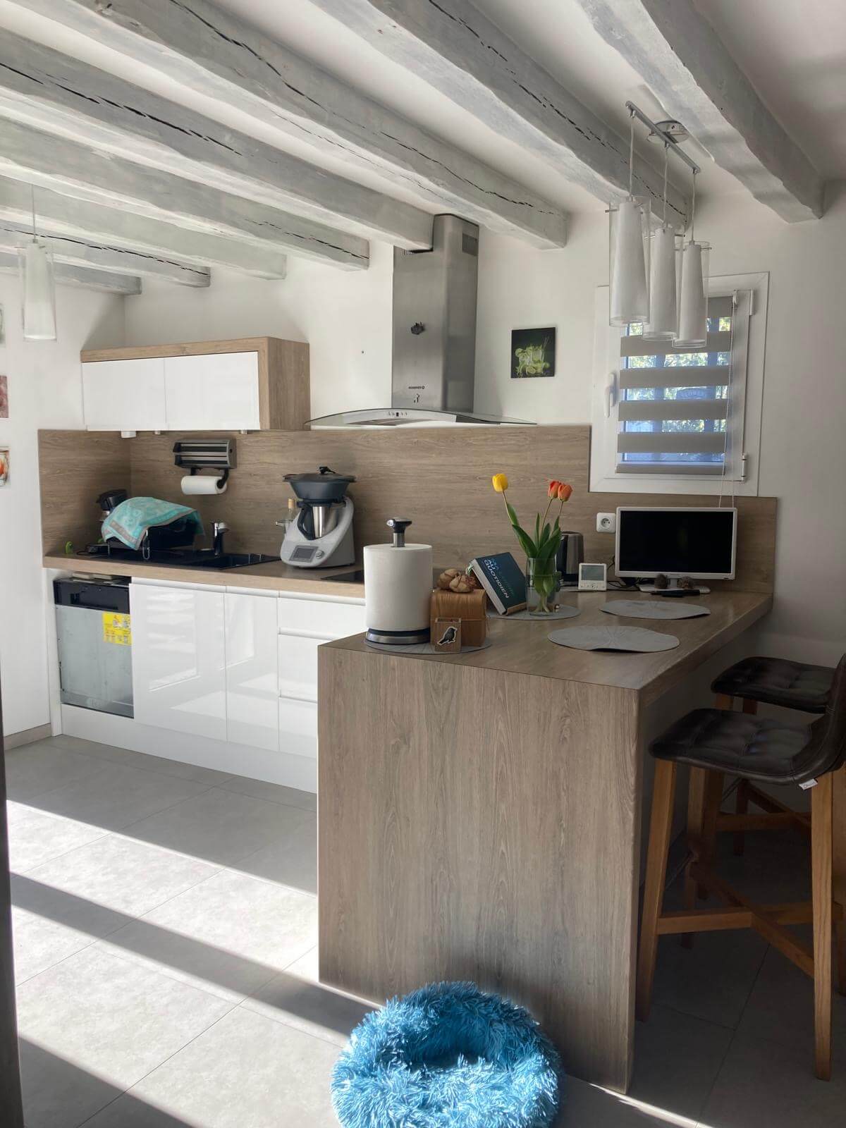 Cuisine blanc laqué et bois à Cormeilles-en-Parisis, Val-d'Oise (95)