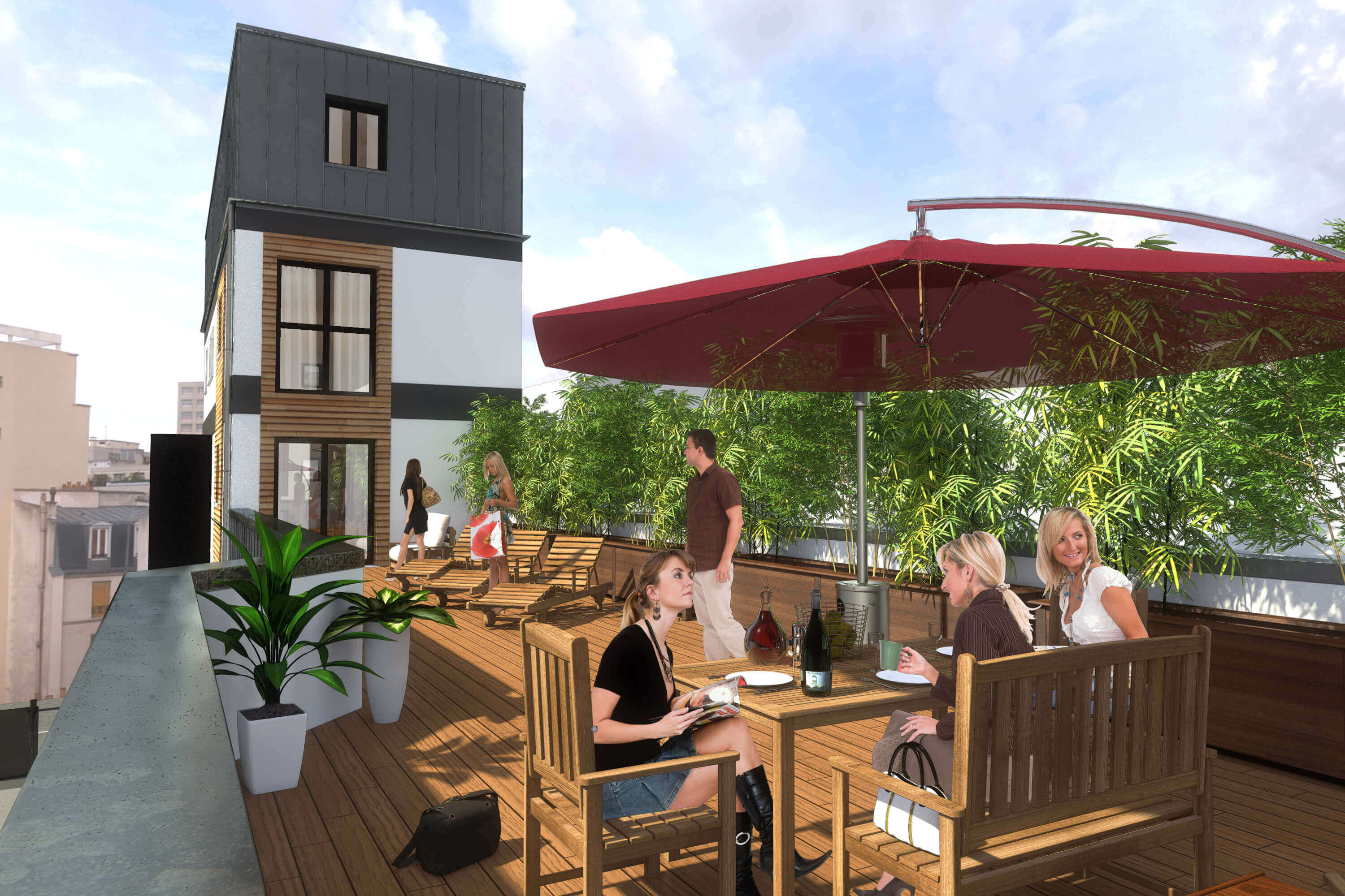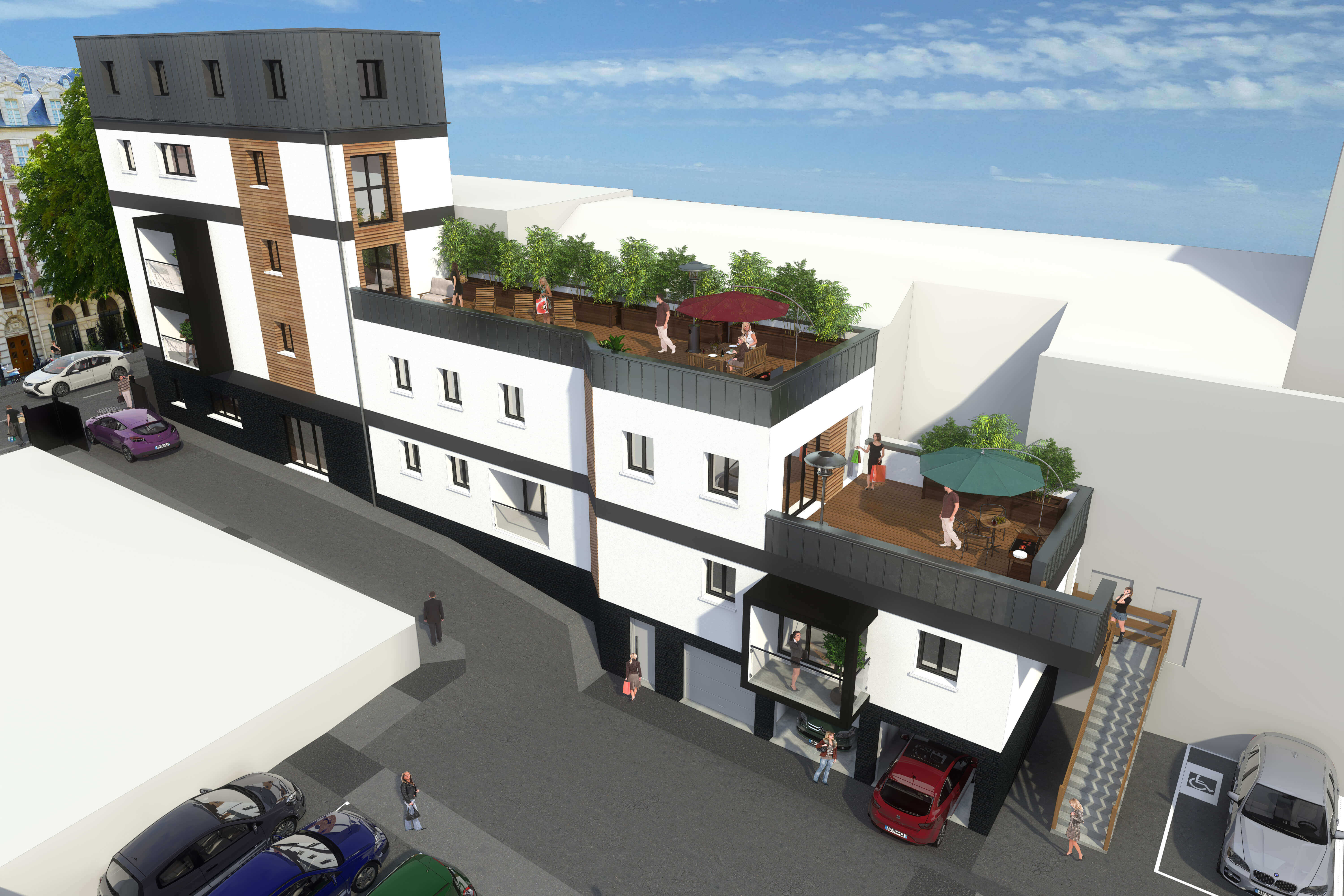 Immeuble de 6 logements constitué de 1 studio , 2 deux pièces , 2 trois pièces , 1 six pièces en triplex avec terrasse type Roof top de 73m2 ainsi que trois garages + caves.